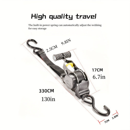 1 Pc Durable Polyester Ratchet Tie-Down Strap With Automatic Retractable Tensioner