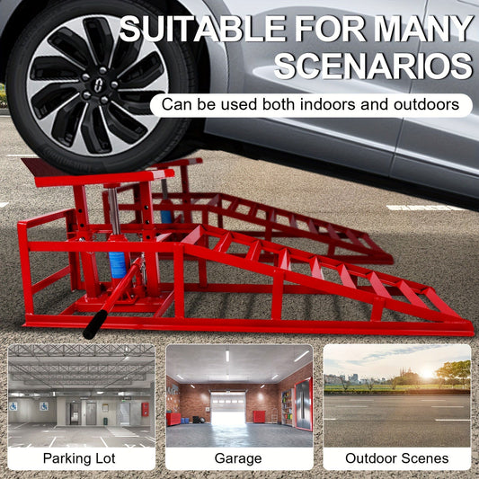 2-Pack Heavy Duty Hydraulic Truck Ramps - 5T/11,000Lbs Capacity, Steel Vehicle Maintenance Platform for Garage, Red