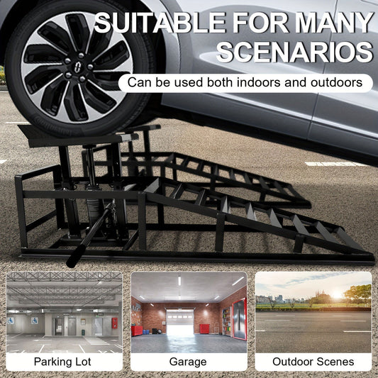 2 Pcs Heavy Duty Hydraulic Truck Ramp, 5T/11,000Lbs Capacity, Steel Auto Wheel Platform for Vehicle Maintenance, Garage, Black