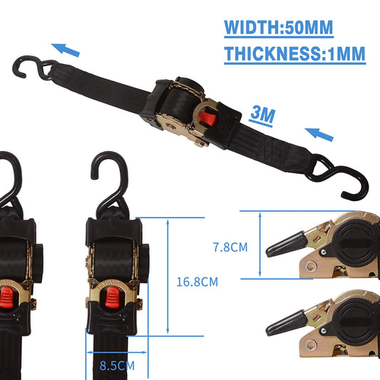 Automatic Retractable Ratchet Straps - 2 Large Straps for Cars, Motorcycles, & Off-Road Vehicles