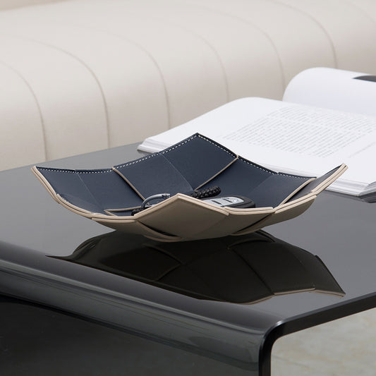 High-Grade Woven Leather Storage Tray - Elegant Key and Dining Table Organizer