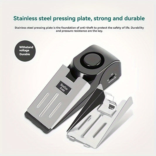 1 Pc Heavy-Duty Door Stopper with Anti-Theft Alarm - Polished Metal Finish, Black, Door Gap & Window Block Alarm