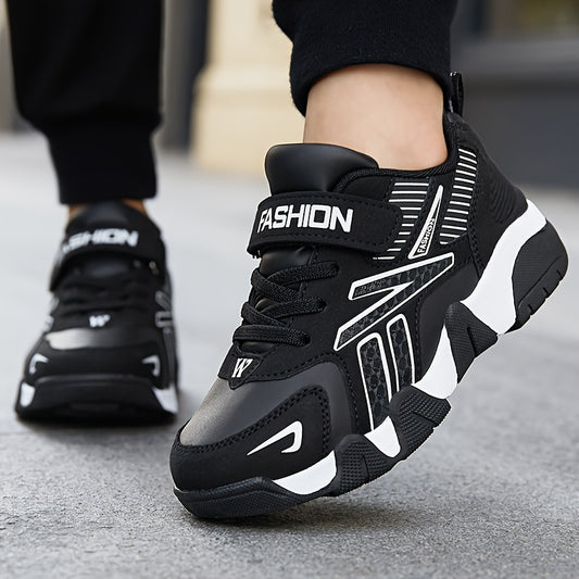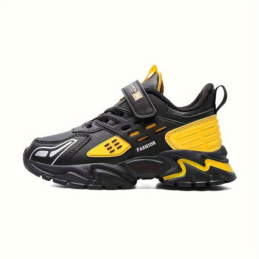 Stylish Boys' Thick-Soled Sneakers with Hook & Loop, Comfortable for Sports and Outdoor Activities.