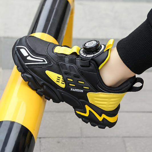 Boys' Casual Low-Top Running Shoes with Rotating Button, Comfy Non-Slip Sneakers for Outdoor Activities.