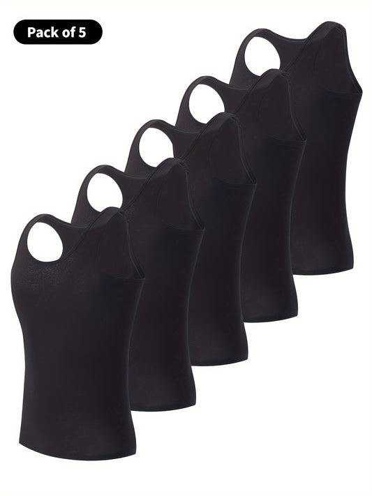 5-Pack Men's Tank Tops - Breathable Quick-Dry Fitness Vests, Casual Plain Color Summer Undershirts
