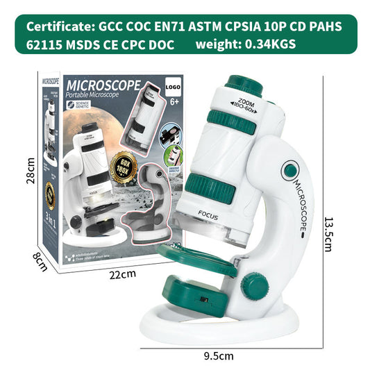 60-120x Pocket Microscope Toy Kit for Kids - Educational Mini Handheld Microscope with Light
