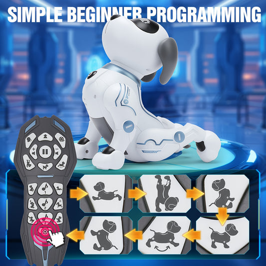 1 Pc Interactive Robot Dog with Remote Control, Voice Command, Dance & Song Functions, Rechargeable Battery, Infrared Sensing, LED Lights ABS Resin Electronic Pet Toy for Kids.