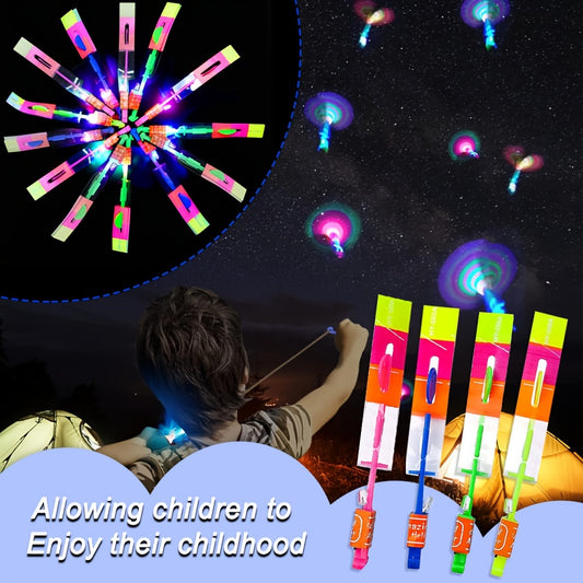 10 Pcs LED Glow Slingshot Toys - Flashing Rocket & Helicopter Designs, Perfect for Birthday Gifts, Carnival Prizes & Classroom Rewards