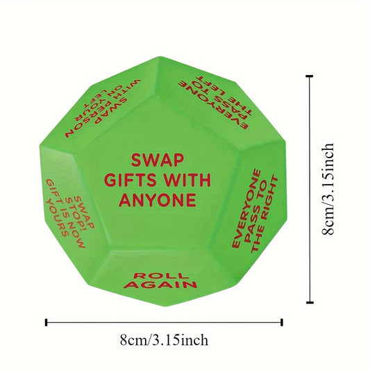 Xmas Twist Santa's Surprise Gift Exchange Dice - 12 Sides, Perfect for Christmas Party Games, 3x3 Inches