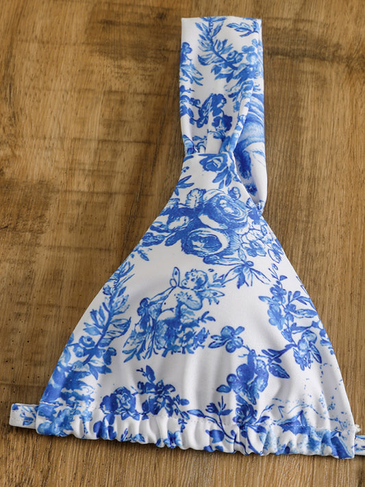 Women's Positioning printing suspenders sexy lace-up two-piece bikini