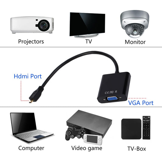 Cable adaptador Micro HDMI a VGA de tableta a computadora Cable Micro HDMI a VGA HD 1080P