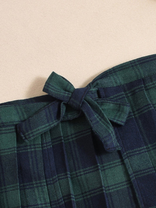 Vestido floral de cuello redondo de invierno de manga larga con falda en forma de A a juego