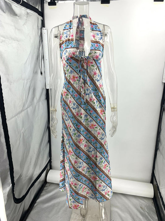 Vestido ajustado sexy sin mangas con estampado de tirantes y temperamento para mujer