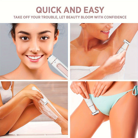 Afeitadora eléctrica recargable por USB 2 en 1 para mujeres, afeitadora corporal indolora y removedora de vello facial