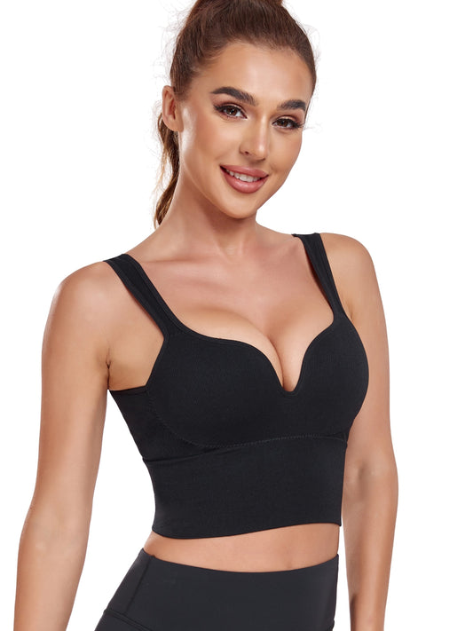 Sujetador deportivo sin costuras con espalda en U para mujer, sin aros, con almohadillas fijas fruncidas y antiflacidez, sujetador deportivo para yoga, running y fitness, ropa deportiva a prueba de golpes