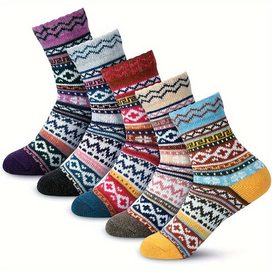 5 pares de calcetines de punto de invierno para mujer: gruesos, cálidos, suaves, para senderismo, esquí, actividades al aire libre y ropa informal