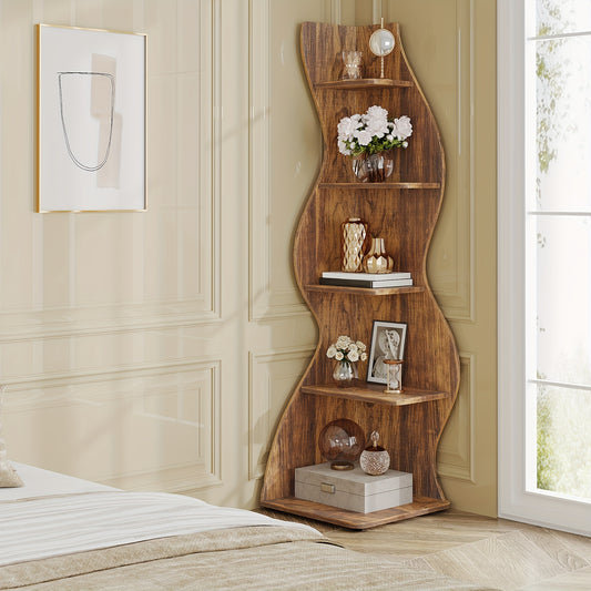 5-Tier Corner Shelf, Rustic Wall Bookshelf, Stylish Plant Stand for Living Room & Office