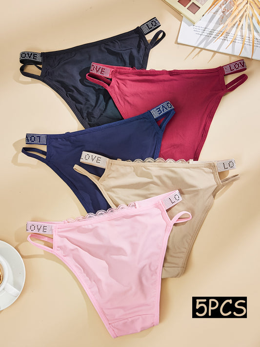 5 Pcs Women's Lace Briefs, Sexy Semi-Sheer Stretchy Underwear, Breathable Lingerie Set