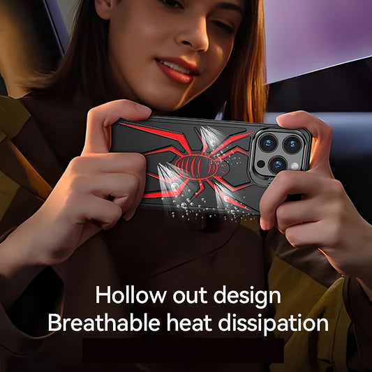 Estuche para iPhone 13 14 15 Pro Max/Pro/Plus, diseño de patrón de araña de metal de aluminio, sin marco, disección térmica, estuche minimalista delgado y liviano con soporte para cámara incorporado, negro/rojo/plateado