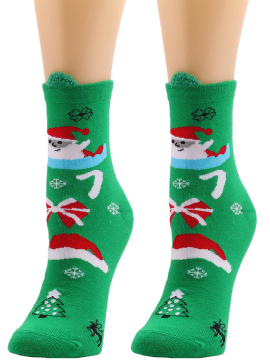 Calcetines elásticos de punto navideños con forma de muñeco de nieve