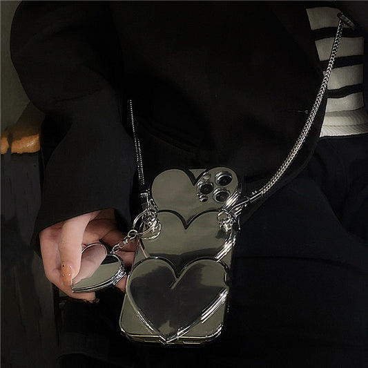 Funda para teléfono móvil con cadena cruzada y corazón bañada en plata