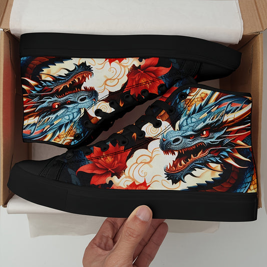 Zapatillas de skate de caña alta con diseño de dragón para hombre: zapatillas con cordones antideslizantes y duraderas