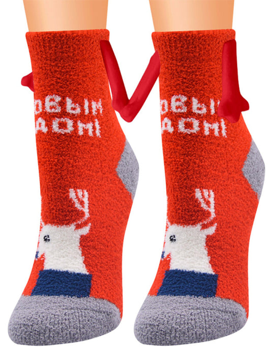 Calcetines navideños de terciopelo coral nuevos, calcetines de algodón con pegatinas para otoño e invierno, calcetines con imán para las manos, calcetines de tubo medio