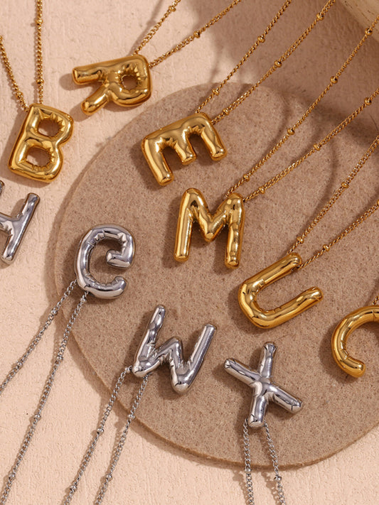 Nuevo collar con colgante de letra de globo con 24 letras chapado en acero inoxidable