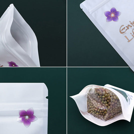 100 piezas/lote de bolsas con cierre hermético transparentes con forma de flor de color
