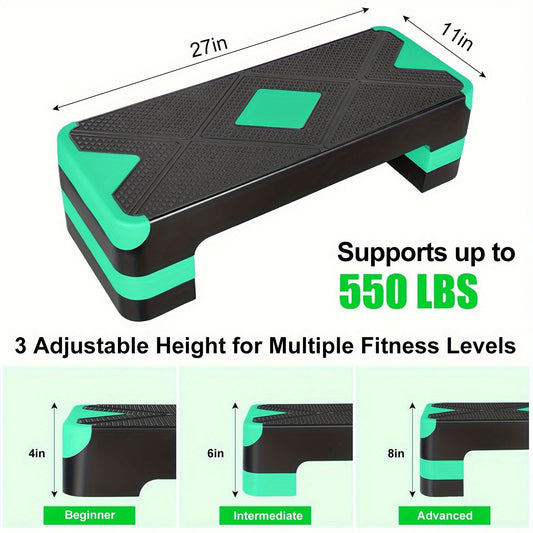 1 pedalera de ejercicio, entrenador de pasos para entrenamiento de 27", con elevadores de altura ajustables de 4", 6" y 8", para entrenamiento aeróbico, ejercicio corporal, entrenamiento de sentadillas