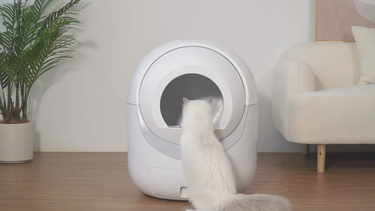 Caja de arena para gatos autolimpiante, caja de arena automática para gatos con tapete y revestimientos, caja de arena autolimpiante de gran capacidad de 70 l, control por aplicación/adecuada para varios gatos - blanca
