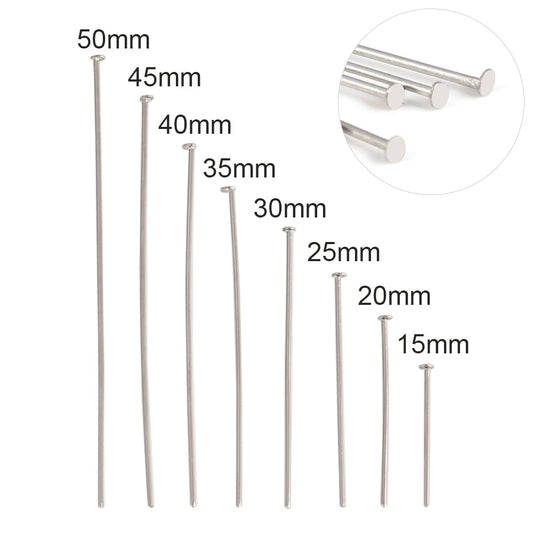 100 piezas/lote de 15-50 mm de acero inoxidable 316 con cabeza plana para hacer joyas de bricolaje