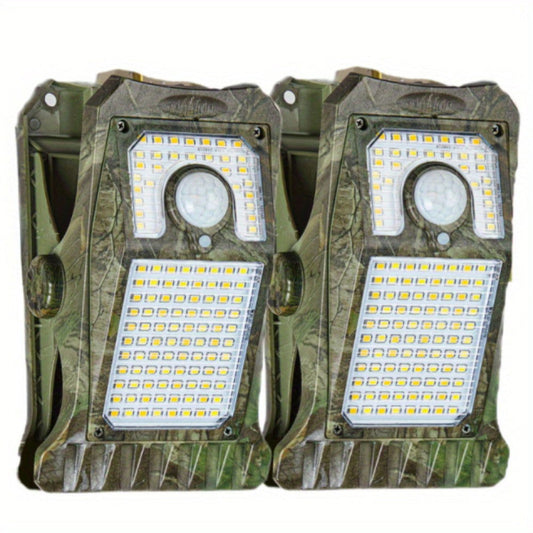 Paquete de 2 luces LED solares con sensor de movimiento, 118 luces LED de seguridad con clip y 3 modos de color para cercas, cadenas de alambre y campamentos