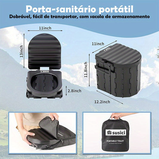 Portable Folding Toilet - Eco-Friendly, Sturdy, Durable, Easy to Clean, Perfect for Camping, Road Trips, Travel, RV Use, and Can Double as a Trash Bin