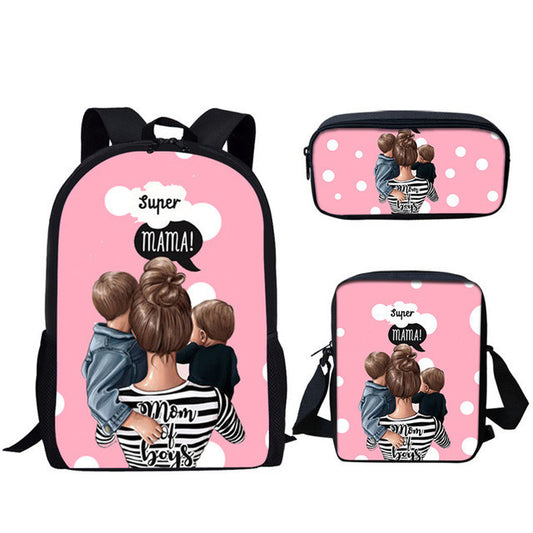 Mochila de estudiante con estampado de tres piezas en diagonal