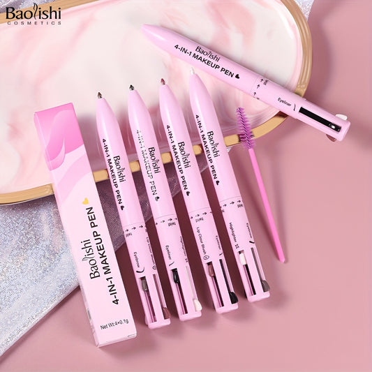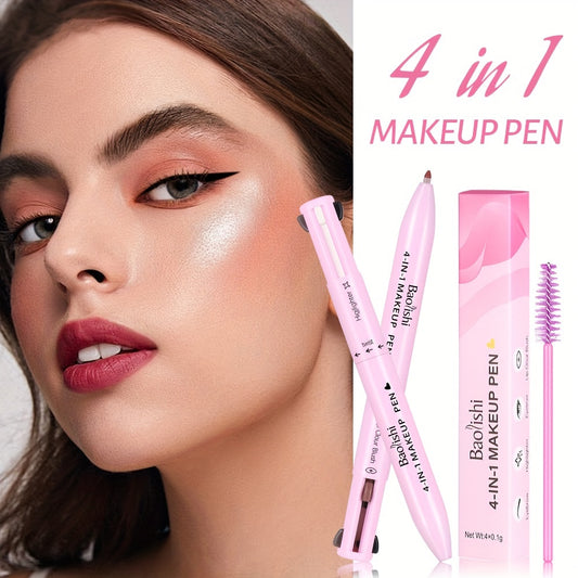 4-in-1 Makeup Pen - Highlighter, Lip Liner & Eyeliner in Matte Finish for All Skin Types - Brown/Red/Black Shades