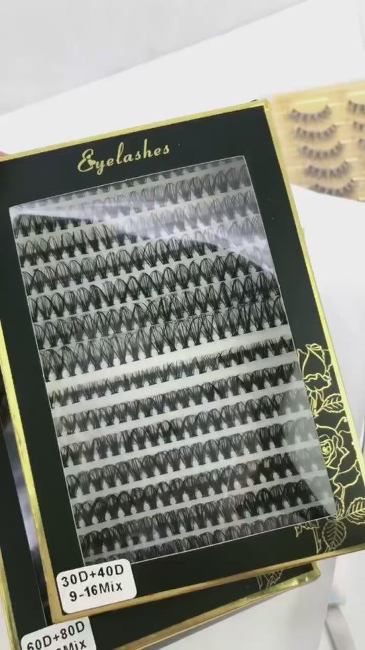 Pestañas individuales en bandeja mixta (30D, 40D, 60D, 80D): pestañas de volumen ruso 3D, grupos de pestañas de visón natural suave, pestañas postizas