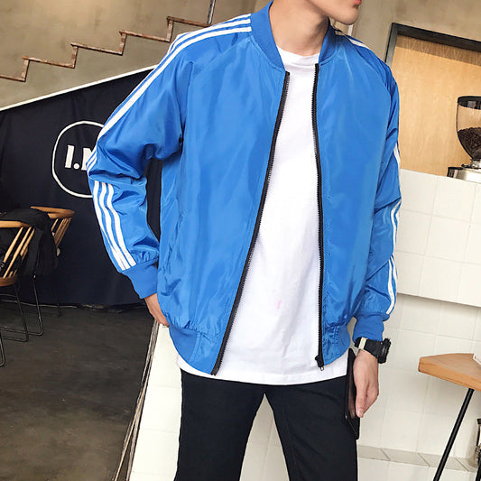 Men's Lightweight Striped Sun Protection Jacket – Youthful Stand Collar Design, Plus Size Available