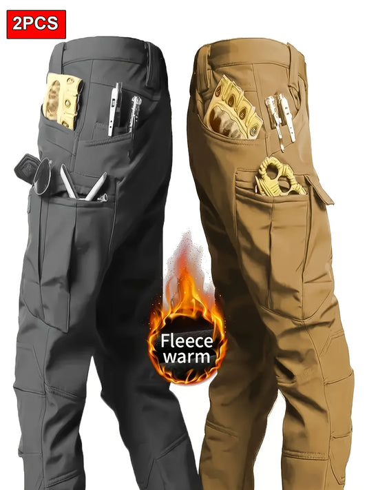 2 Pcs Men's Fleece-Lined Thermal Cargo Pants - Waterproof, Windproof, Multi-Pocket Tactical Pants for Winter Outdoor Activities
