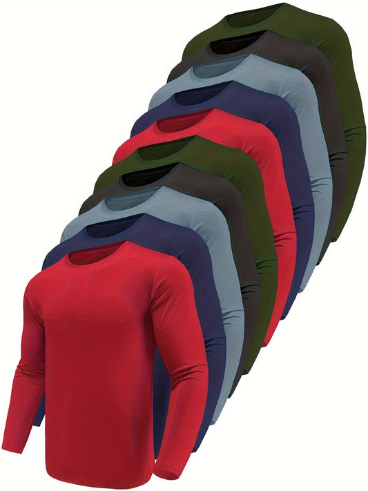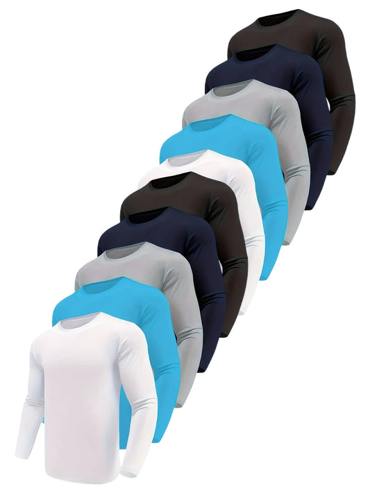 10-Pack Men's Quick-Dry Long Sleeve T-Shirts - Moisture-Wicking, Casual Workout and Leisure Tops