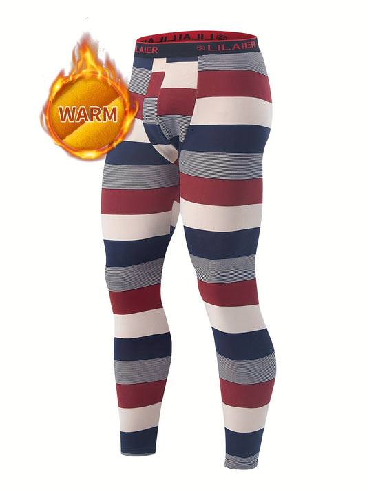 Men's Striped Warm Compression Pants - Durable Fitness Leggings for Running and Intense Workouts