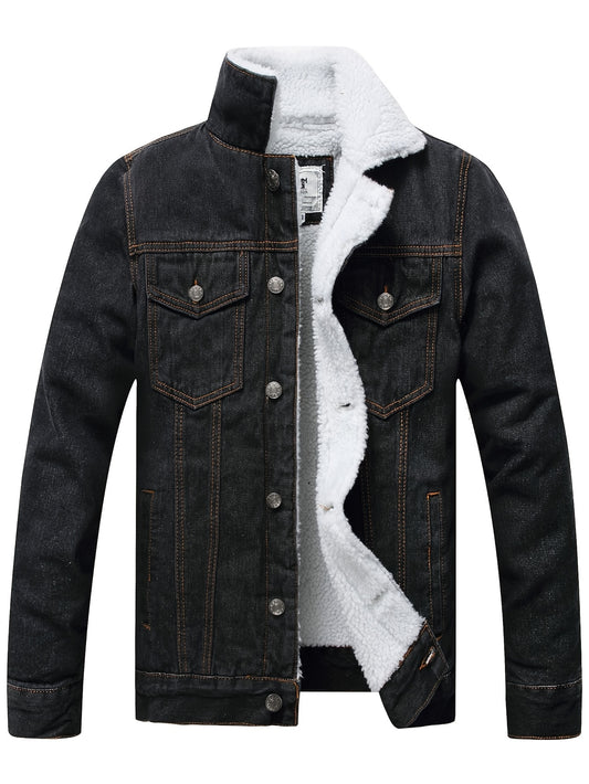 Men's Fleece Lined Denim Jacket Casual Winter Warm Button Down Trucker Jacket Coat with Pockets