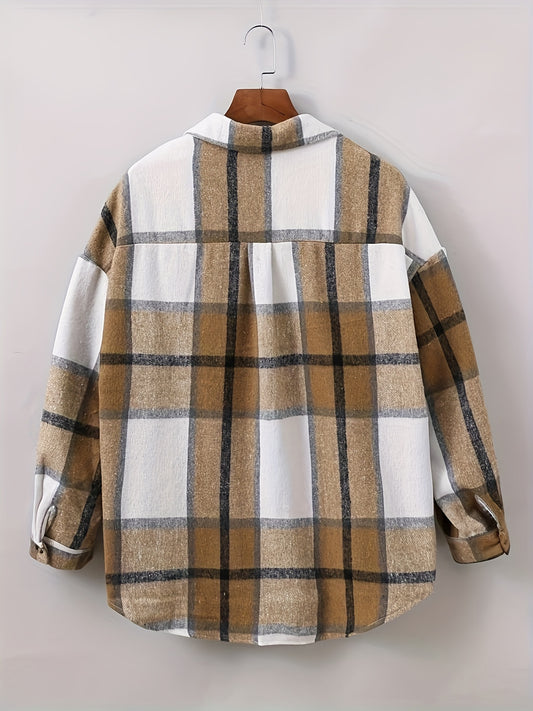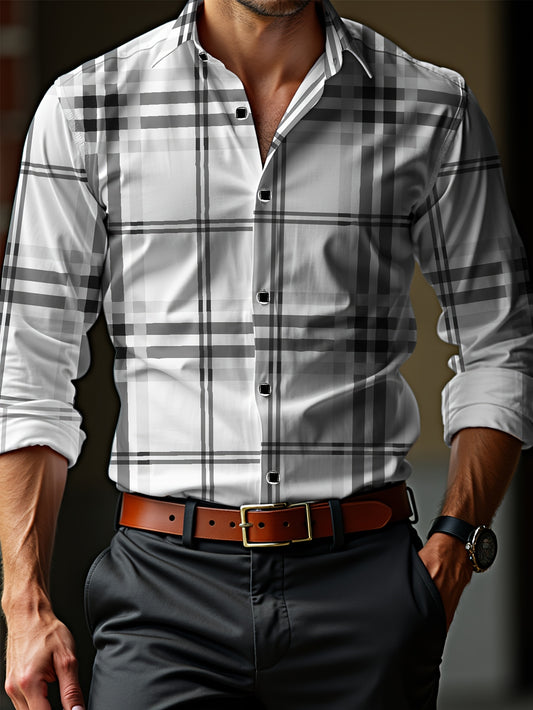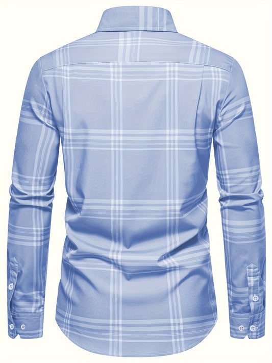 Men's Casual Plaid Long Sleeve Lapel Shirt