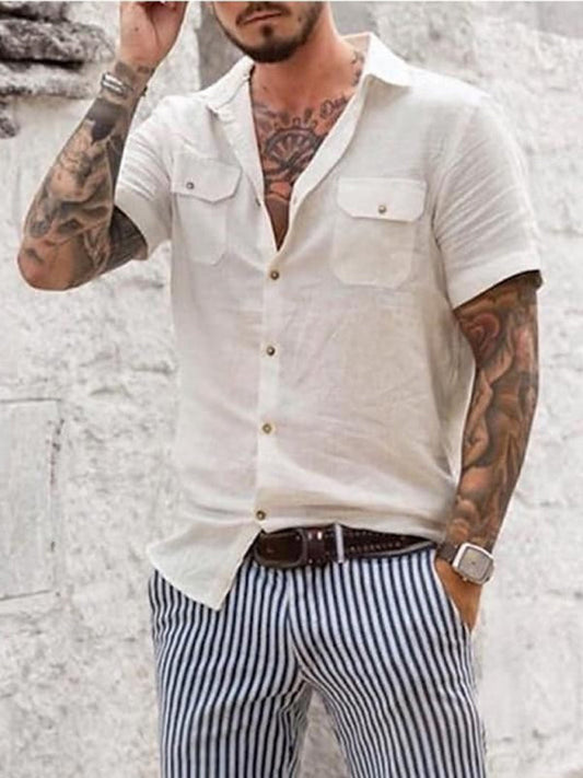 Camisa informal de manga corta con dos bolsillos y tejido para hombre