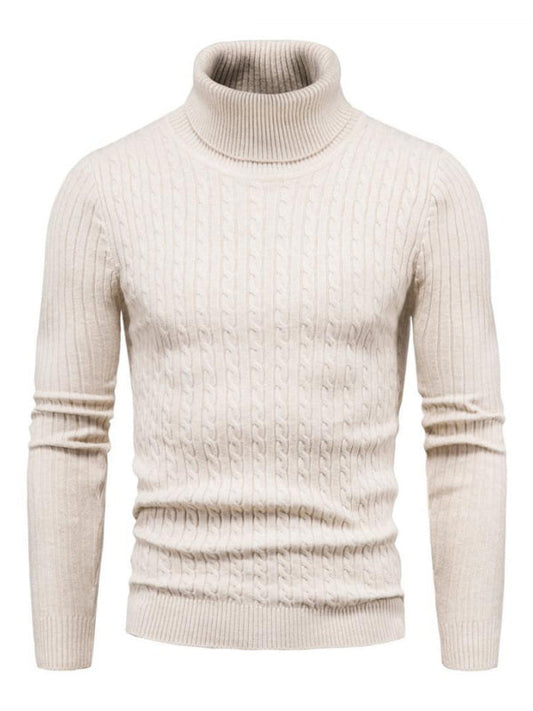 Suéter de punto para hombre, cuello alto cruzado, suéter ajustado con parte inferior