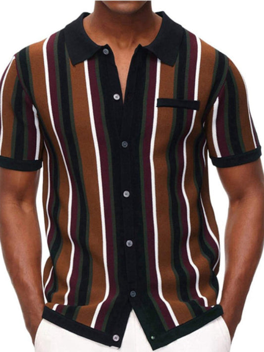 Camisa de manga corta con rayas de contraste de color y botonadura sencilla para hombre