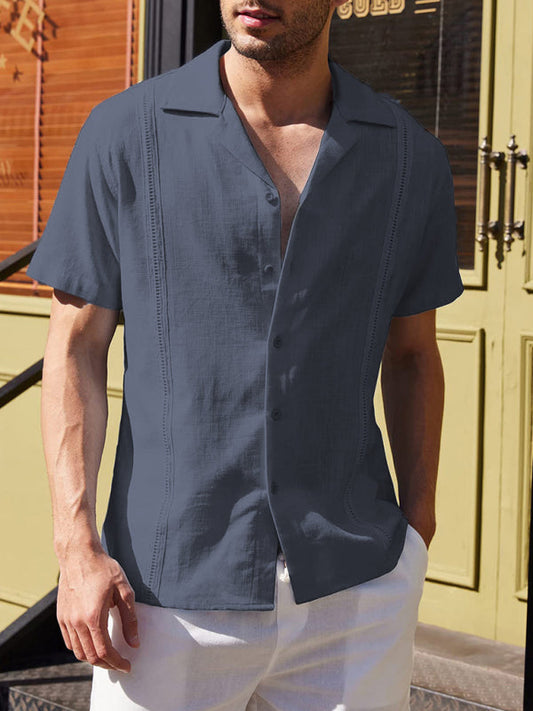 Camisa de lino informal holgada para hombre, guayabera cubana, camisa playera de manga corta