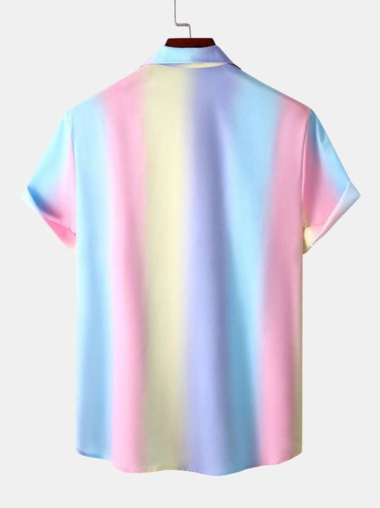Camisa de campamento con botones y manga corta en colores del arco iris para hombre