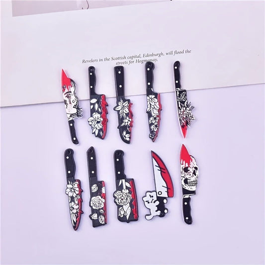 10 colgantes de cuchillos ensangrentados: forma de cuchillo de acrรญlico con calavera y rosa, joyerรญa de estilo gรณtico para hacer tรบ mismo, para pendientes y collares, accesorios para manualidades