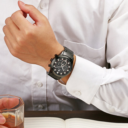 Reloj de negocios para hombre, resistente al agua, calendario, correa de acero, reloj de cuarzo multifuncional para hombre